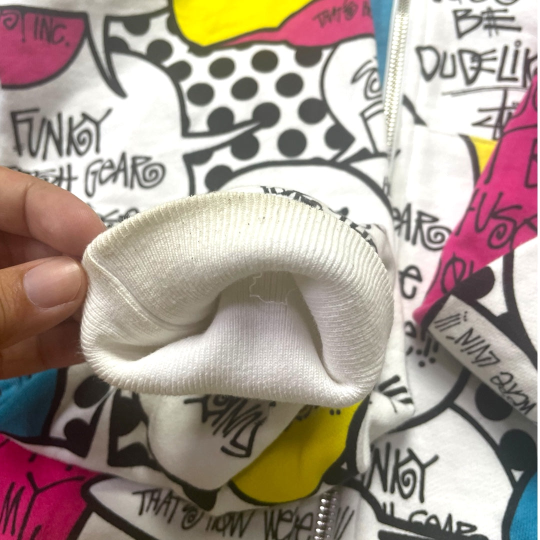 Stussy All Over Print Hoodie Comic Speech Bubble Graphic – Size M, Rare Vintage Style (Gently Used)