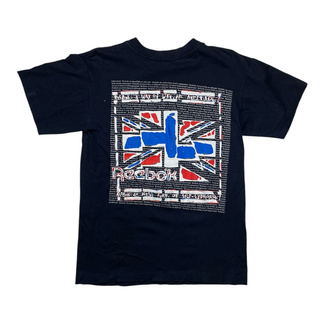Vintage 90s Reebok Graphic T-Shirt Navy Blue Union Jack Print – Size L (Gently Used)